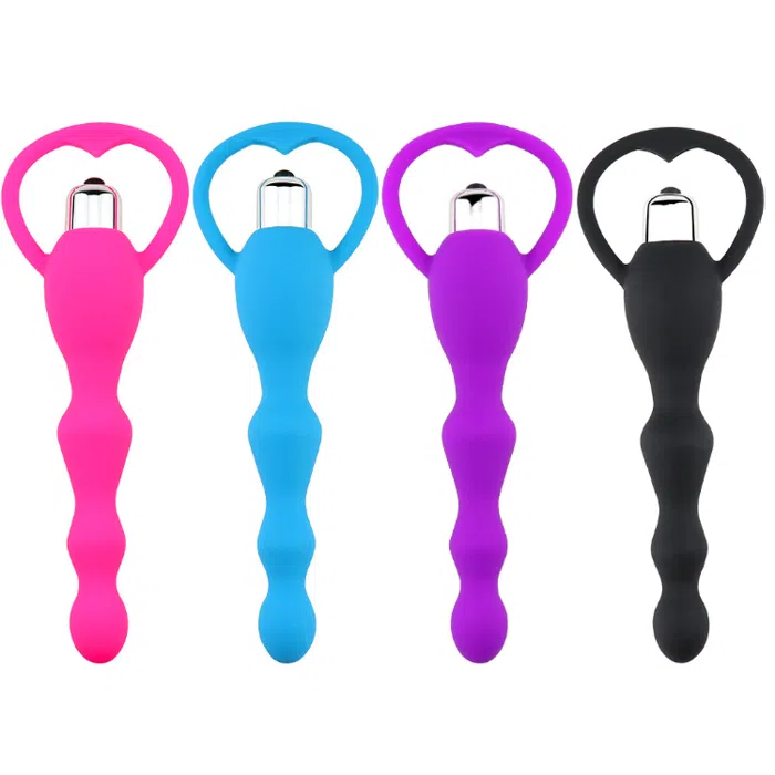 Juguete anal de silicona, tapón anal vibrador con cuentas, tapón anal vibrador para adultos, tres diferentes diámetros para una inserción placentera.